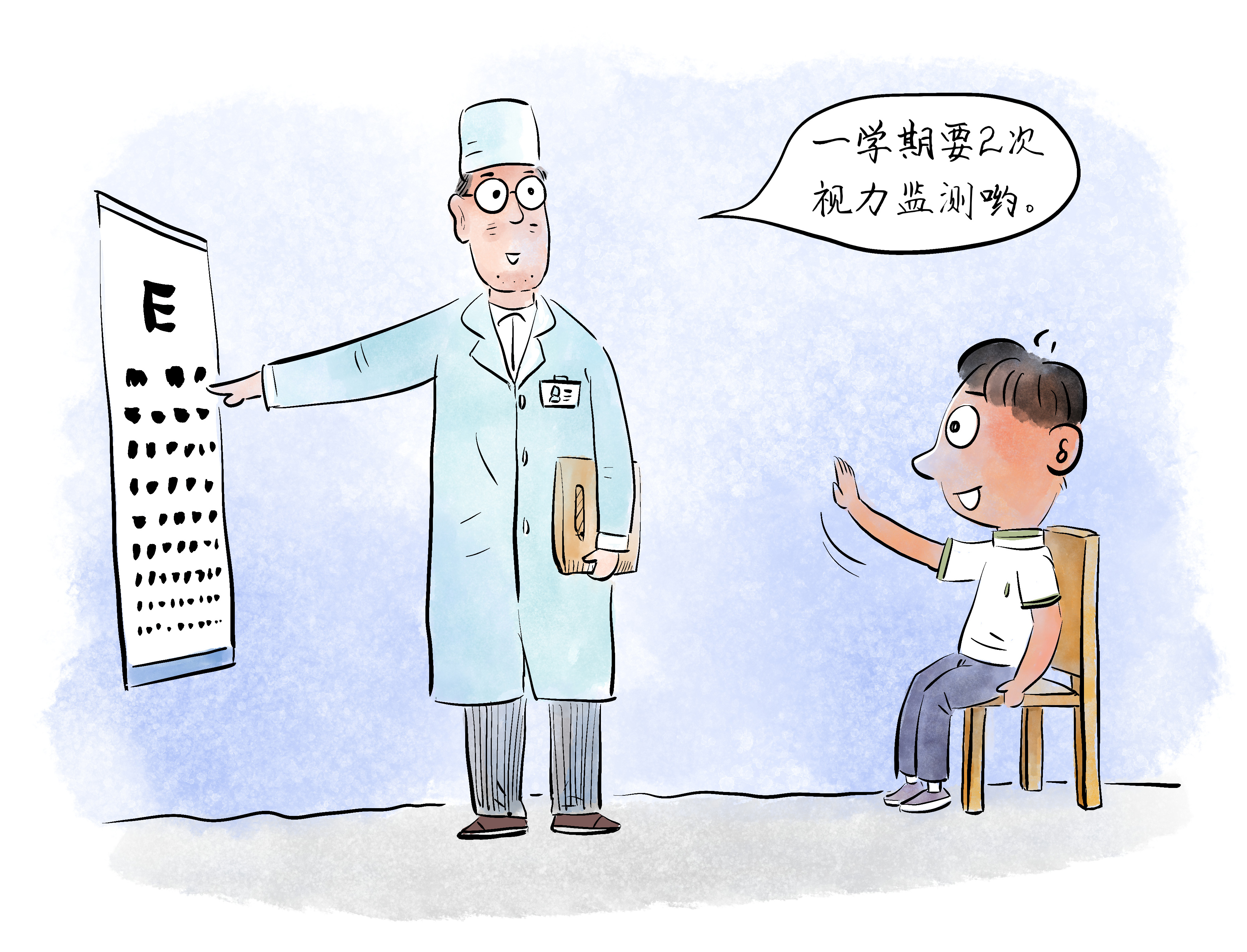 小学落实每学期2次视力监测制度,开展小学生视力和远视储备量监测,特别关注儿童眼轴和远视储备量的发展趋势,尽早发现近视隐患,及时向家长反馈。